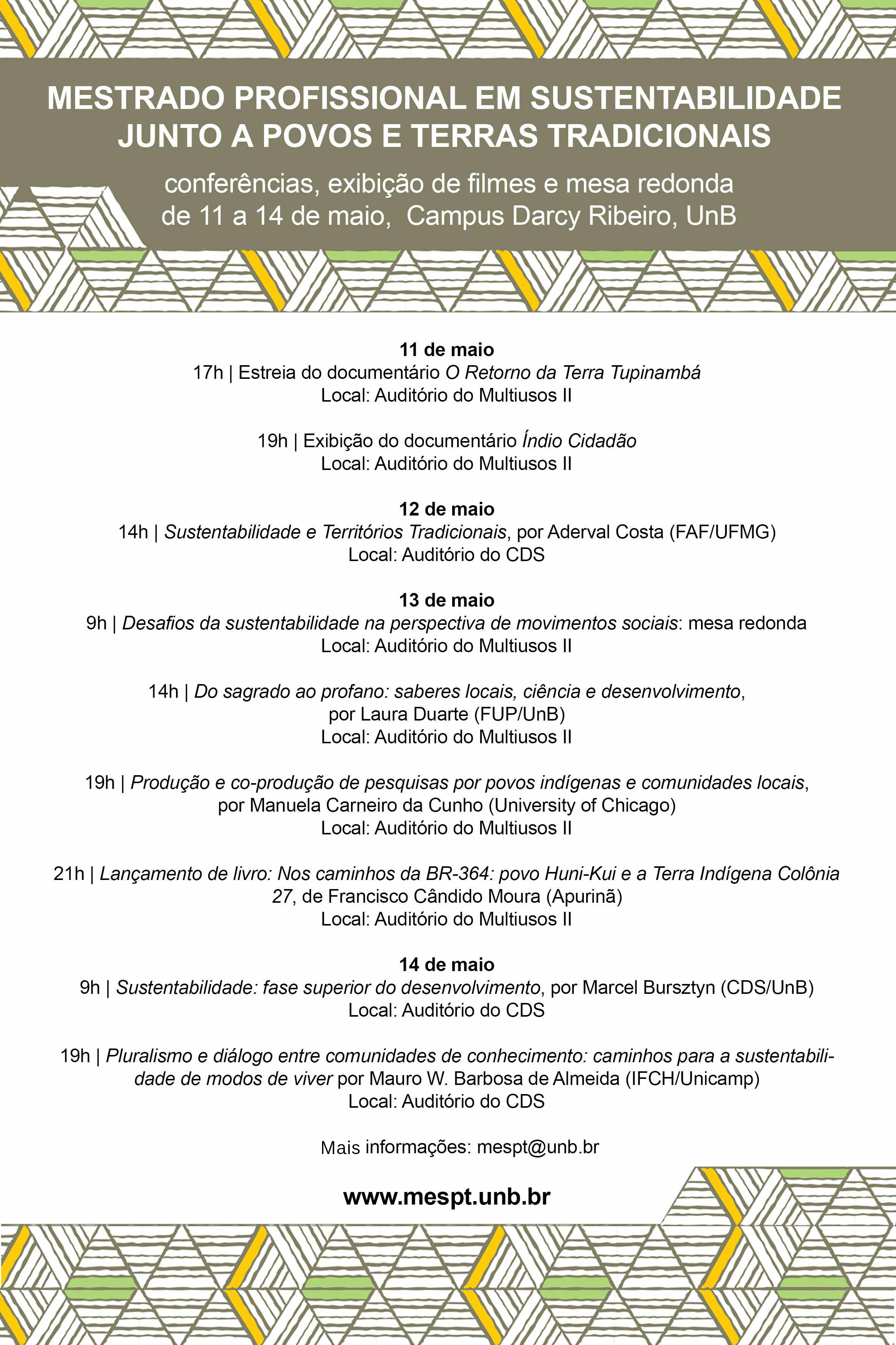 Após a conferência, haverá o lançamento do livro "Caminhos da BR-364", fruto da dissertação de Francisco Apurinã, egresso da primeira turma do MESPT.