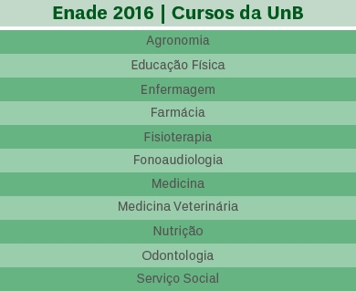 Em todo o Brasil, estudantes de 18 cursos de graduação vão participar do Exame Nacional de Desempenho de Estudantes (Enade) 2016. Na UnB, alunos de 11 bacharelados devem fazer a avaliação deste ano, prevista para o dia 20 de novembro, às 13 horas (horário de Brasília).