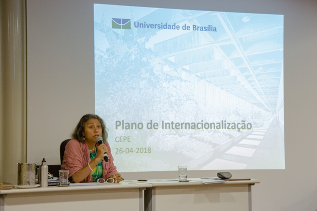 Assessora especial da Vice-Reitoria, Ana Helena Rossi apresenta Plano de Internacionalização no Cepe. Foto: Amália Gonçalves/Secom UnB