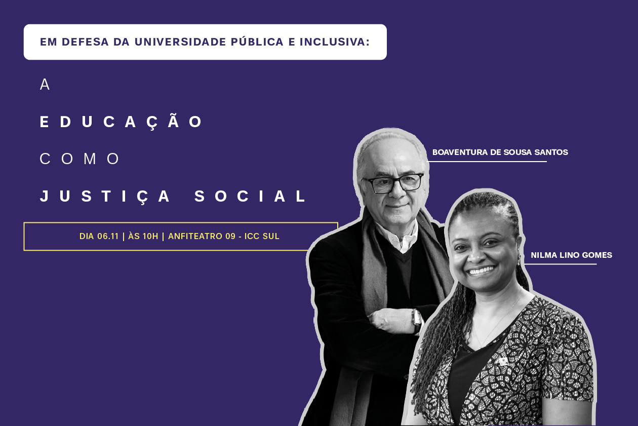 A Universidade de Brasília recebe, nesta segunda-feira (6), o sociólogo português Boaventura de Sousa Santos e a ex-ministra da igualdade racial Nilma Lino Gomes, para a conferência Crise Global e consequências para Educação e Universidades Públicas: a defesa da Universidade e da Educação como justiça social. O encontro é aberto ao público e será realizado no anfiteatro 9 do ICC, no campus Darcy Ribeiro, a partir das 10h.