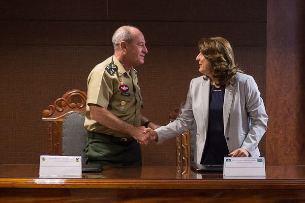 “O Exército avançou muito nos últimos anos, buscando a tecnologia e a inovação. Nos sentimos muito honrados de participar deste processo, sabendo que a instituição está preocupada em oferecer uma formação de alto nível”, afirmou a reitora Márcia Abrahão, lembrando que, recentemente, a UnB subiu três posições no ranking THE América Latina.