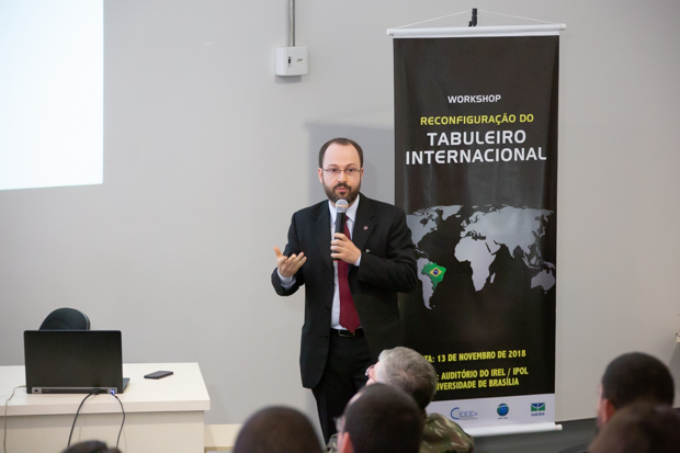 Com o tema Reconfiguração do tabuleiro internacional e fronteiras nacionais, o workshop discutiu as novas relações políticas e diplomáticas do cenário mundial, esclarecendo o sistema geopolítico pós-guerras para alunos do curso de Relações Internacionais. O evento, que aconteceu na última terça-feira (13), foi organizado pelo Centro de Estudos Estratégicos do Exército Brasileiro (CEEEx), em parceria com o Instituto de Relações Internacionais (Irel) e o Decanato de Extensão (DEX) da UnB.