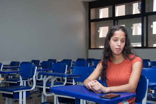 DESAFIOS – Viviane Santos é acadêmica do quarto semestre de Letras-Tradução Inglês e possui deficiência visual. Para ela, o apoio dos tutores é essencial não apenas na hora de estudar, mas também para se deslocar pelo campus. Apesar do auxílio, a estudante encontra barreiras para seu desenvolvimento acadêmico. "Não tenho materiais adaptados para o braile. Nem mesmo as provas. Dependo da ajuda e compreensão de amigos, tutores e dos professores. Tenho me esforçado ao máximo”, relata Viviane. Para ela, as salas e os departamentos deveriam ter identificação em braile.